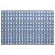 Dieser lustige, niedliche künstlerische Stil Shih Tzu Kopf lächelt vor einem Hintergrund von blau mit Pfotenabzügen und Tracks in Grau, Lue und Rosa. Design von Diane Blackman.