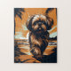 Farbenfrohe grafische Gestaltung eines shih-tzu an einem tropischen Strand mit Palmen. Phantastisches Geschenk für Shih-tzu Besitzer und Shih-tzu Liebhaber.