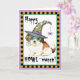 Senden Sie Halloween-Grüße mit dieser Karte eines niedlichen Shih Tzu Welpen, der eine grüne Maske und einen Hexenhut trägt, der mit einer albernen Spinne verziert ist. Ideal für Kinder jeden Alters, die Shih Tzu und Halloween Liebe. Viel Glück!