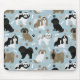 Niedliche Shih Tzu Hunde mit schwarzen, weißen, grauen, goldenen und maskierten Fellfarben mit Pfotenabzügen und Hundeknochenmuster.