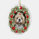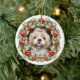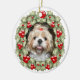 Cream und white Shih Tzu's Gesichtsausdruck, rot im Haar, in einem Weihnachtsschmuck Weihnachtsschmuck Foto