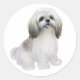 Shih Tzu - Weiß mit Grau-tan Runder Aufkleber