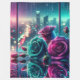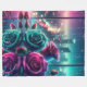 Dieses lebendige Design besticht durch drei Rose, die mit Regentropfen schimmern, eine faszinierende Ergänzung zur Kollektion "H2OArt: Beautiful Blankets & Cosy Covers" von AlexSandra. Set vor dem Hintergrund eines Stadtbildes in der Nacht durch ein regengetränktes Fenster, die Rose sind in aquamarinen und lila Farbtönen gehalten, mit üppig grünem Blattwerk, das die lebendige Szene noch verstärkt. Der Hintergrund hat einen Bokeh-Effekt mit fesselnden Lichtern, die die traumhafte und künstlerische Qualität des Bildes verbessern. Dieses Kunstwerk vereint die Eleganz der Rose mit einer modernen, farbenfrohen Drehung und macht sie zu einer perfekten Ergänzung zu einer naturgetreuen Dekoration. Die faszinierenden Details und die lebhaften Farbtöne schaffen eine optisch ansprechende und harmonische Komposition, die sich ideal eignet, um jedem Raum eine Touch von natürlicher Schönheit hinzuzufügen.
