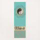 Eine inspirierend Matte mit einem eleganten Mosaikjang-Symbol, umgeben von goldfarbenem, leuchtendem blüh und kleinen, grünen Zweigen auf einem grünen aquamarinen Hintergrund, dann unten ist ein goldglänzendes Zickzack Muster mit einem glänzenden Goldband, in dem man es personalisieren kann, um es zu einem einzigartigen eigenen zu machen. Bezaubernde elegante Atmosphäre.