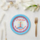 Wasserfarbe nautische Küsten-Baby-Dusche personalisierte Einwegpapier-Teller. Aquarellfarbene Leuchtturmgestaltung. Personalisieren Sie mit Ihrem eigenen Namen. Derzeit liest Shine das Licht Es ist ein Junge Rachel's Baby Dusche. Ideal für eine Babydusche aus dem Wassersport oder für diejenigen, die sich schon lange für einen kleinen Jungen ausprobieren. Original Aquarelllicht Leuchtturm whimsical Art Malerei und Design von Sarah Trett.
