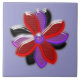 Diese phantastische Kachel zeichnet sich durch ein digitales Bild einer zarten Blume mit lila, roten und schwarzen Blütenblättern mit lila Zentrum aus. Die Blätter sehen aus, als wären sie aus glänzendem Kunststoff, der das Licht gefangen hat und einen unglaublichen Effekt verursacht hat. Der Hintergrund ist eine beruhigende blaue Farbe.