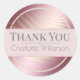 Diese glamourösen Aufkleber sind mit einem rot-schwarz-rosa Hintergrund versehen, der einen glänzenden, metallisch-ähnlichen Effekt mit dem Farbverlauf der Farbe hat. Der hellere Schatten in der Nähe der Mitte verleiht einen reflektierenden oder glänzenden Look. Der Aufkleber ist gerahmt mit einem weißen, kreisförmigen Glitzer. Auf dem Aufkleber ist ein glänzend aussehendes, goldfarbenes, tropisches Palmenblatt mit einem personalisierten Etikett bedruckt. Der rechteckige Textbereich weist eine weiche, rosa Hintergrundfarbe auf, wobei die Phrase "Vielen Dank" über einem Beispielnamen gedruckt wurde. Sie können den Aufkleber personalisieren und Ihren eigenen Namen, Ihren Firmennamen oder Ihre persönliche Nachricht oder Ihr eigenes Zitat hinzufügen. Sie können als Etiketten oder Umschlag Aufkleber verwendet werden und eine große persönliche Touch hinzufügen.