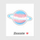 Digitale Kunst eines glänzenden Planeten in den Farben der Transgender-Fahne umgeben von Ringen wie dem Saturn im Weltraum.