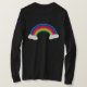Ein farbenfroher Regenbogen aus blau, rosa, lila, grün, gelb und orange zwischen zwei flauschigen weißen Wolken