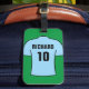 Erstellen Sie ein Gepäckanhänger mit Ihrer Wahl des Football-Shirts mit einem zusätzlichen Namen und einer zusätzlichen Nummer. Light Blue Football Shirt.