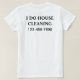 Einfache Hausreinigung Shirts mit den Worten, die ich DO HOUSE CLEANING in fett Buchstaben und Kontaktnummer, die sich so fällt, dass es leicht zu lesen und sich zu erinnern. Entworfen als Shirt für jemanden, der Zuhause reinigt oder jeden Mitarbeiter als einheitliche Obergrenzen für ein Budget liefert.
