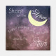 Schieß auf den Mond. Auch wenn Sie verpassen, werden Sie unter den Sternen landen. Wunderschöner Magnet mit dem motivierend Zitat von Les Brown mit cooler Typografie und Illustrationen des Mondes, der Sterne und einer Nebel-Galaxie.