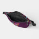 Dieses Fanny Pack enthält den Slogan SHOOT FOR THE STARS auf der vorderen Hosentasche in leuchtend farbigen bemalten Stilschriften in blau, gelb, orange, rosa und lavender auf einem dunklen lila Hintergrund, der mit dem farbenfrohen Sternmuster des Beutels koordiniert wird.