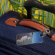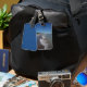An einem schönen Tag können Sie Ihre Taschen mit Surfmarken an der Sandküste verzieren - genau das, was Sie auf Ihrer Reise erwarten. Die blaue Rückseite ist gewartet, damit Sie Ihre Informationen hinzufügen können.