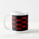 Gemusterter Druck mit Shou Motiv, für Langlebigkeit, in den schwarzen und korallenroten roten Farben. Shoushan ist eine Abkürzung für "shou Shan fu hai, diese bedeutet, dass "Mai Ihr Leben so standhaft wie die Berge und Ihr Glück ist, die so grenzenlos sind wie die Meere."