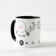 This unique mug showcases your love for music with its musical notes design and black handle.
