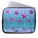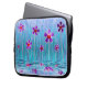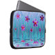 Ein digitales zeichn niedlicher, lila Blumen mit leuchtenden roten Mittelpunkten. Sie gucken Sie leise vom großen Gras neben einem Becken mit klarem, rippendem Wasser an.