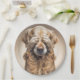 Ein goldener Retriever, der seine Augen mit Pfoten auf einem beleuchteten Hintergrund bedeckt