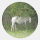 Dieses niedliche Set runder Aufkleber zeigt ein wunderschönes Foto eines herrlichen weißen Pferdes, das unter einem Baum stehend und etwas schüchtern aussieht.