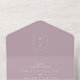 Dieses QR-Code mauve lilac einfache moderne Hochzeit alles in einer Einladung aus der Shylah Collection ist perfekt für eine klassische Hochzeit. Das lila, rosa Lila-Design zeichnet sich durch ein geometrisch ovales Monogramm mit den Initialen des Paares und ein modernes minimalistisches Ambiente aus. Schreiben Sie Ihre Gastadressen auf der Rückseite der gefalteten Einladung, oder kaufen Sie koordinierende Gästetiketten-Aufkleber (separat erhältlich).