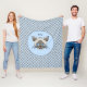 Diese leicht zu personalisierende Decke ist mit einem skurrilen Muster grafischer siamesischer Katzengesichter in heller und dunkler Ausführung mit blassblauen Augen und einer Single-Katze in der Mitte einer koordinierenden Kreisform verziert.