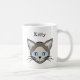 Diese leicht zu personalisierende Tasse zeichnet sich durch niedliche grafische Kunstwerke aus, die das Gesicht einer siamesischen Katze in kräftigen Farben darstellen, das Licht auf der einen Seite und das Dunkle auf der anderen Seite, beide mit blassblauen Augen.