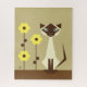 Stilisierte semigeometrische abstrakte Siamkatze mit Blume auf beigem Hintergrund. Farben können für die Anpassung von Kontaktedesignern angepasst werden