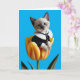 Ein siamesisches Katzenkätzchen rennt aus einer gelben Tulpe.