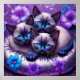 Siamese Kätzchen Purple Blumen Silver Pillow Poster
