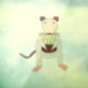 Diese phantastische Fensterverkleidung zeigt ein grafisches Bild einer niedlichen extravaganten siamesischen Ratte mit cremefarbenem Körper, rosa Füße und Pfoten, braunen Ohren, Nase und Schwanz und kleinen roten Augen. Die süße kleine Ratte hält einen geschmackvollen Geburtstagskuchen in ihren Pfoten. Der Kuchen ist ein Schokoladenkuchen mit blassgelbem Zuckerguss und mit rotem Marmelade gefüllt. Auf dem Kuchen stehen neun Kerzen.