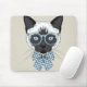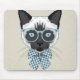 Dieses Ausrüstungsbeschreibungen, die eine siamesische Katze in einem blauen Paar der Gläser und der checkered Bogen-Krawatte kleidete.