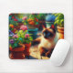 Siamkatze im Gartenölgemälde Mousepad