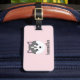 Dieses doppelseitige Gepäckanhänger zeigt eine Abbildung eines blauen mit Augen sibirischen Husky-Welpen. Dieser Hund ist Set vor einem hellrosa Hintergrund. Passen Sie dieses Gepäckanhänger mit Ihrem Namen, Telefonnummer und Adresse an.