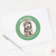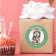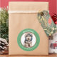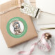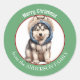 Im Mittelpunkt dieses niedlichen Holiday Aufklebers steht ein Bild eines bezaubernden kleinen sibirischen Husky-Hundes, der seine Winterhoodie trägt. Das Bild ist in einem kreisrunden grünen Rahmen gerahmt, der den benutzerdefinierten Text in Weiß enthält. Ideal für Weihnachtskarten, Korrespondenz und Geschenkpakete.