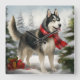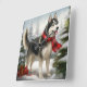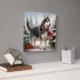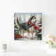 Siberischer Husky-Hund im Schnee Weihnachten Quadratische Wanduhr