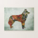 Der sibirische Husky Hund mit einem schäbigen, blumengeschmückten Gestaltprofil auf einem strukturierten grünen Hintergrund. Ein hübsches Geschenk für einen Haustierbesitzer.