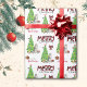 Das wiederholte Muster dieses niedlichen Weihnachtsverpackungspapiers ist ein Bild eines wunderschönen sibirischen Husky-Hundes, der neben einem verzierten Weihnachtsbaum zwischen hellen, verpackten Geschenkpackungen sitzt. Ein Stiervogel landet auf dem Baum dahinter. Stilisierter, roter und schwarzer Büffel karierter Text sagt MERRY CHRISTMAS", und Ihre eigene Unterschrift ist in zwei Bereichen für Sie individuell.