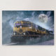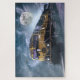 eine moderne Lokomotive gegen einen alienhimmel und einen Vollmond.