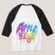 Ein lustiges und farbenfrohes T - Shirt-Design mit der Phrase "Apple of My Eye", geschrieben in einem spielerischen, fehlgeleiteten Schriftart. Jeder Buchstabe ist eine andere pastellfarbene Farbe mit einem leichten 3D-Effekt, der ihm ein leichtes und skurriles Gefühl verleiht.
