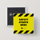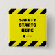 Gelb & schwarz Button für Sicherheit am Arbeitsplatz mit "Safety Starts Here" und Ihrem Logo. Vollständig anpassbar. Sie können den Text ändern, Ihr Firmenlogo eintragen oder löschen. Sicherheit geht vor!