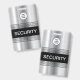 Coole moderne Abzeichen des Sicherheitspersonals, die mit einem digital bedruckten silberfarbenen Hintergrund aus Metall entworfen wurden und das Aussehen von gebürstetem Metall und Logo-Vorlage nachahmen, die Sie durch Ihr Firmenlogo und das auf beiden Seiten gezeigte Sicherheitsmuster ersetzen können. Moderne Übernahme der Unternehmenssicherheit in einem preisgünstigen Design.