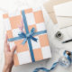 Sichtbare Quadrate pfirsich und weißes geometrisch Geschenkpapier