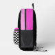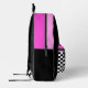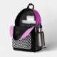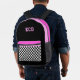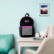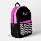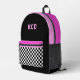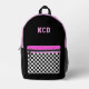 Dieses lustige Kinder-Rucksack-Design verfügt über eine schwarze, weiße, rosa und magentafarbene Farbpalette mit karierten Taschen und Initialen. Es ist ein lustiges, modernes Design für alle Altersgruppen!