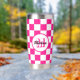 Checker Hot rosa weiß geometrische Retro Monogram Insulated Tumbler. Gekreuztes geometrisches Retromuster Wasserflasche. Praktisches Geschenk für aktive Dame. Cooles geometrisches rechteckiges Muster in Retro. Vintage Fliesen weiß und heiß rosa modernes Schachbrett.