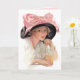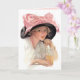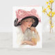 Junge Frau beim Trinken eines Limonaden mit einem großen schwarzen Hut mit großem rosa Bogen. Eine reizvolle Vintage Szene.
