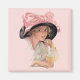Junge Frau beim Trinken eines Limonaden mit einem großen schwarzen Hut mit großem rosa Bogen. Eine reizvolle Vintage Szene.