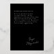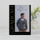 Célébrez le jalon de la remise des diplômes avec notre carte de Faire-part sophistiquée et élégante. Cette carte frappante présente un arrière - plan noir intemporel qui complète parfaitement une seule photo du diplômé orientée portrait. A côté de la photo, le mot "GRADUATE" est emblaqué dans une véritable feuille d'or luxueuse, présentée dans une police audacieuse et moderne qui ajoute une touche de classe contemporaine. Le nom du diplômé est écrit à la main avec élégance en haut de la photo, ajoutant une touche personnalisée et chaleureuse qui rend chaque carte unique. Ce style de signature distinctif garantit que le faire-part se sent à la fois personnel et prestigieux. À l'arrière, il y a suffisamment d'espace pour un message plus long, vous permettant de partager votre fierté, votre joie et vos souhaits avec vos amis et votre famille. Que vous mettiez en valeur les réalisations du diplômé, que vous annonciez des plans d'avenir ou que vous exprimiez simplement votre gratitude, cet espace est parfait pour transmettre vos sentiments de manière significative. Parfait pour les baccalauréats, les collèges ou toute autre célébration de remise de diplômes, notre carte de Faire-part est conçue pour honorer cette occasion spéciale avec style et élégance. Faites de votre faire-part un souvenir inoubliable grâce à ce souvenir magnifiquement artisanal que vos amis et votre famille chériront.