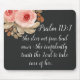 Sie befürchtet nicht schlechte Nachrichten: sie vertraut sicher dem Lord, um sich um ihr in der weißen Typografie auf einem schwarzen Tafelhintergrund mit rosa Rosen zu kümmern. Dieses Zitat wird von Psalm 112 genommen: 7. Es ist eine gute Erinnerung, die, da wir Zeit mit dem Lord verbringen und lernen, ihn zu genießen und seine Befehle zu befolgen, wir ihm vertrauen kann, um sich um uns zu kümmern. Sehen Sie Psalm 112: 1. Karo unser unser Geschäft für mehr in dieser Sammlung.