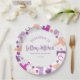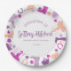 Diese lustigen Brautparty-Papier-Teller sind perfekt für Frauen, die Pferde Liebe und Reiten mit Reitsport-Themen Grafik und hübsche Blumen Akzente in den Tönen von lila, Lavendel, Magenta und Pfirsich. Sie enthalten den lustigen Slogan "Getting Hitched" und Ihren eigenen Text in lila Schrift.