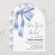 Mit dieser blauen Bow Bridal Shower Einladung fügen Sie Ihrem Fest eine Touch Eleganz hinzu. Mit einem schicken blauen Bogen und sanften, neutralen Tönen, "She's Tying the Knot" Brautparty Party, schick und modern Brautparty